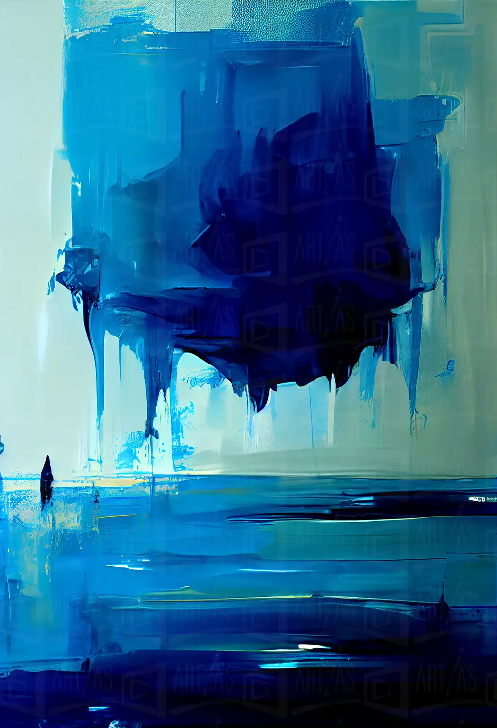 Obra abstracta que presenta una composición en tonos azules, donde se aprecian formas fluidas y dinámicas. El contraste entre las diferentes tonalidades de azul y un fondo claro crea una sensación de profundidad y movimiento. Esta obra invita a la interpretación personal, destacando la interacción entre el color y la forma, lo que la convierte en un ejemplo significativo del arte contemporáneo.