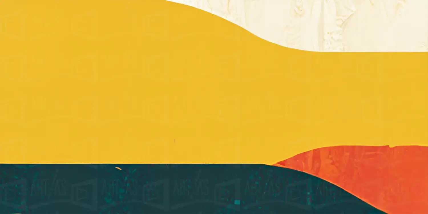 Obra abstracta que presenta una composición de formas geométricas en una paleta de colores vibrantes. Los tonos amarillos dominan la parte superior, mientras que un verde profundo se extiende en la parte inferior, interrumpido por una curva roja. Esta disposición crea un contraste visual que invita a la interpretación personal, destacando la interacción entre los colores y las formas. La obra refleja un enfoque contemporáneo en el uso del color y la forma, siendo un ejemplo de la estética moderna.