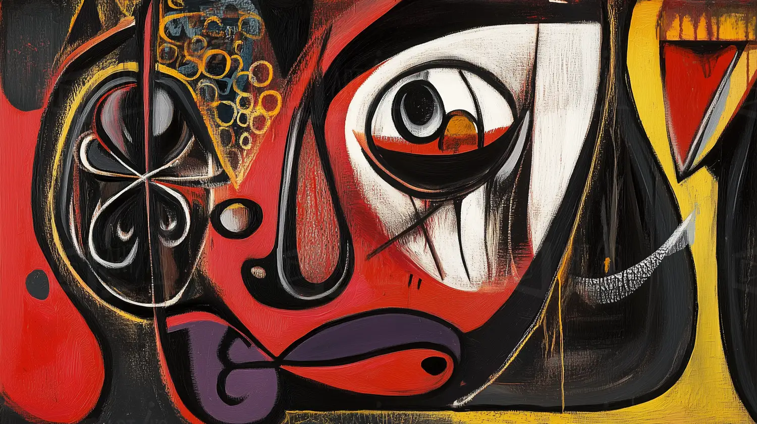 Retrato abstracto que presenta una composición de formas geométricas y colores intensos. La obra utiliza un contraste marcado entre el rojo, negro y amarillo, creando un efecto visual impactante. Las líneas y formas se entrelazan, sugiriendo una expresión emocional compleja. Esta obra refleja influencias del expresionismo y el arte moderno, destacando la búsqueda de nuevas formas de representación en el siglo XX.