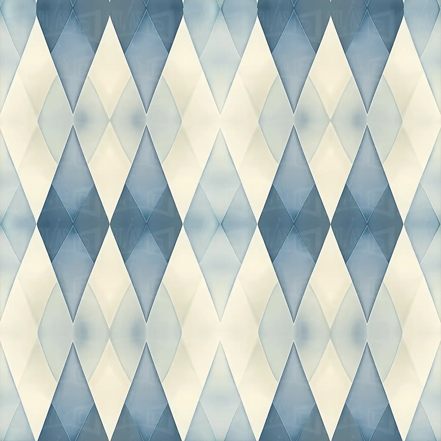 Patrón geométrico en tonos azules y beige con formas de rombos.